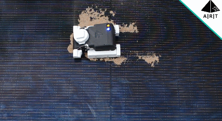 The drone can detect solar panels to determine the drop off location. It can land on inclined surfaces. After successful landing the cleaning robot detaches from the drone. More info is available here.