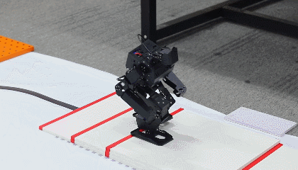 This robot uses a 2DOF wide angle camera. The above video shows how it can climb stairs.