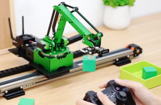 Here is another advanced kit that can take your coding and robotics skill to the next level. The HIWONDER JetMax Pro AI Vision Robot Arm is compatible with an electric sliding rail for pick and place applications. It comes with app and wireless handle control.