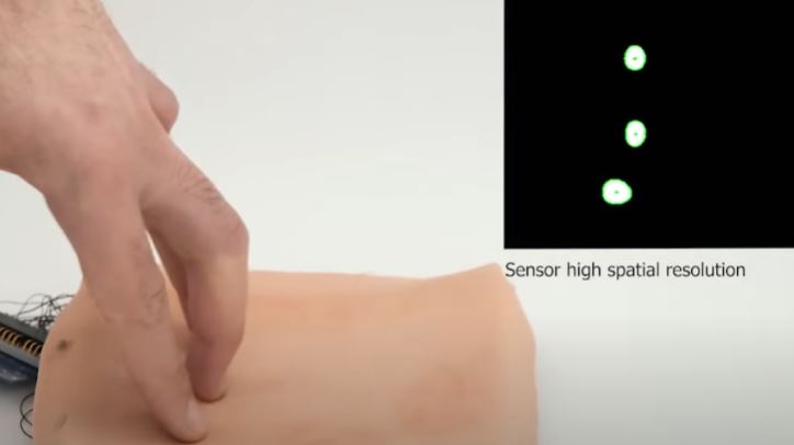 kinds of senses, including the sense of smell and touch. This video by researchers Marc Teyssier, Brice Parilusyan, Anne Roudaut and Jurgen Steimle shows a human-like artificial skin sensor that enhances human-robot interactions.