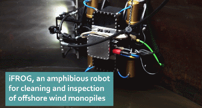 Meet the iFROG: an amphibious robot designed to take on offshore inspection and maintenance tasks. It can clean and inspect monopiles above water level and up to 60 meters below. It was recently trialed at the ORE Catapult’s National Renewable Energy Centre in Blyth.