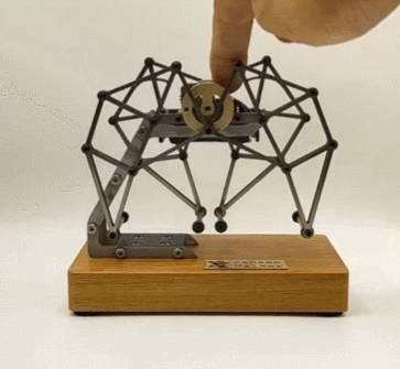 Here is a cool robotic sculpture powered by the Strandbeest. The Jansen Walker by Eli Yoo is powered by a simple motor and rechargeable battery. It has a brass, stainless steel, aluminum, and wooden base. This piece has a footprint of 140 x 80 x 125mm.