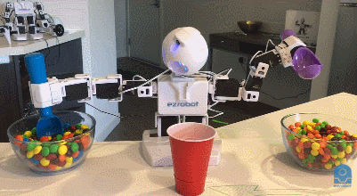 JD Humanoid serves M&Ms or Skittles Candy Snacks
