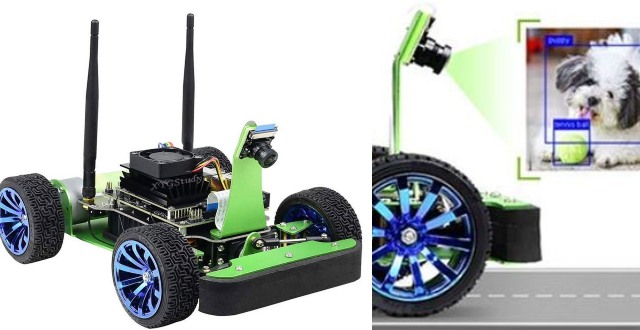 Here is another robot kit designed for AI developers. The JetRacer AI Racing Robot is made for NVIDIA Jetson Nano. It comes with acrylic pieces, metal parts, tires, and all the parts you need to get it together. Just bring your own Jetson Nano Developer kit.