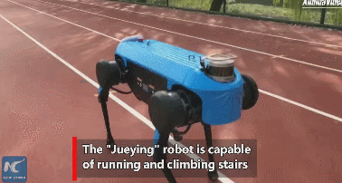 Here is another robot dog that can run, climb stairs, and negotiate rough train. Jueying is a 4-legged robot that measures 1 meter long and 60cm tall. It weighs only 70kg. It is completely electric and lasts up to 2 hours on a full charge. It has a top speed of 6km per hour.