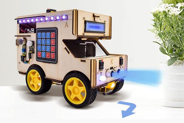 Here is another robot kit that teaches your kids basics of coding. The KEYESTUDIO Smart Robot Car is made for Arduino. It can be programmed to avoid obstacles and track lines. It can also follow thanks to its ultrasonic sensor.