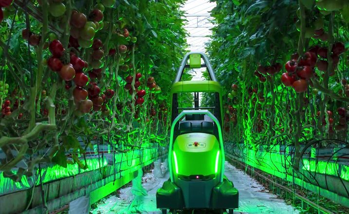 Meet the Kompano robot from Priva: a greenhouse robot that can move around alongside humans and cut leaves autonomously. The Kompano can de-leaf tomato plants 24/7. It can be easily controlled with a mobile device. This robot can deleaf up to 1 hectare per week.