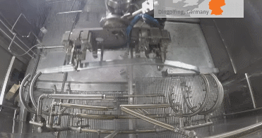 The robot is designed to resist water spray, chemical cleaning agents, and high temperatures. The above video shows this washing robot in action.