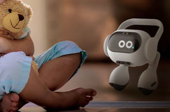 This robot can express itself with movements thanks to its articulated leg joints. It is based on the Qualcomm, Robotics RB5 Platform. This AI agent can act like a pet monitor or moving security camera. It can patrol your rooms and alert you on your phone when something is wrong.