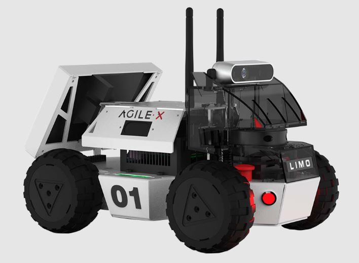 This is the Limo: a customizable mobile robot with AI that you can control with your smartphone. It has 4 steering modes, including Omni-directional, tracked steering, Ackermann and four-wheel differential. The LIMO app relies on a Jetson Nano and various sensors for operation.