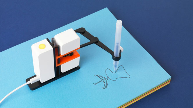Here is a robot arm that can hold a pen and draw/write what you write on your tablet. Line-us simply mimics your movement and can draw on any writable surface. This internet connected robot lets you save and share your drawings with others.