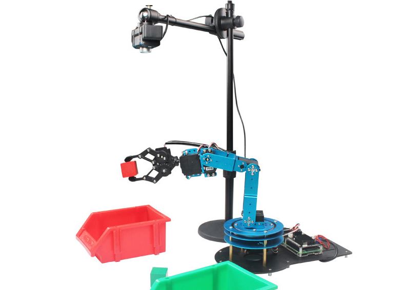 Here is another Raspberry Pi robot kit that can teach you a thing or two about Python programming. The LOBOT ArmPi comes with AI object recognition. It uses the Raspberry Pi 4B as the brain. You can view video from the included high-definition camera on your mobile device or tablet.