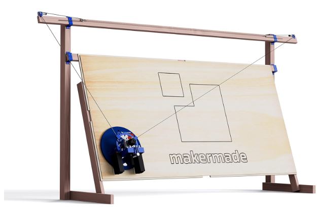 This is the M2 Automated Cutting Machine from MakerMade: a wall mounted CNC machine with accurate performance and 1mm variance. This machine is compatible with Bosch Colt, Makita RT0700CX, and other comparable routers. It provides you with a cutting space up to 32sq.ft.