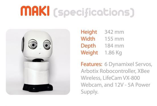 Here is another humanoid robot that you can 3D print and customize while learning a thing or two about technology. MAKI is an emotive robot capable of interacting with humans. It comes with a USB webcam and microphone. Using a PC, MAKI can be used for vision processing.