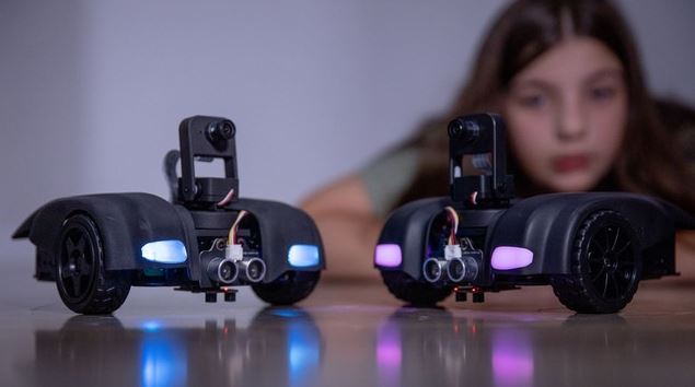 Here is another robot kit designed to teach your kids about robots, coding, and AI. MARK (make a robot kit) supports graphical coding and MicroPython. It ships with ability to recognize colors, shapes, and objects. It can be extended through connection ports for digital, analog & I2C modules.
