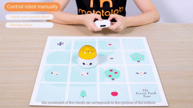This robot is made for kids aged 3+. In Control Mode, kids can press the buttons on the controller to move the robot. In coding mode, a series of commands can be entered on the controller. Matatalab Lite is smart enough to detect obstacles and react to light.