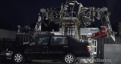 Home Rugged Robots MegaBot Mk.III 16ft Giant Robot Picking Up a Car