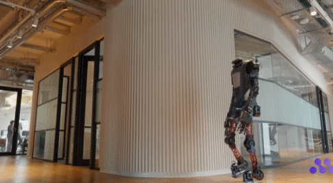 This is the MenteeBot by Mentee Robotics: an agile AI robot that has human-like movement. It can walk in any direction, run, squat, and turn in place. It features Sim2Real learning for lifelike gait and hand movement. This robot also has real-time 3D mapping and localization. Its arms have a full range of motion and can take on delicate tasks.