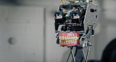 Here is an awesome robot designed to be skinned for advanced animatronic projects. Mesmer 2.0 comes with cameras in its eyes. It can track faces and mimic the head and mouth positions. The robot has a quick release system, so you can switch the head off and remove it.