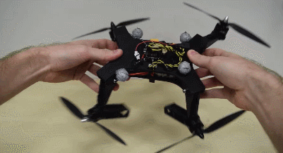 Here is a shape changing quadcopter that can reconfigure itself mid-flight. Just like a regular drone, it has 4 motors but changes shape with freely-rotating hinges. Nathan Bucki, Jerry Tang, and Mark W. Mueller are the researchers behind this projects. As they explain: