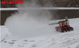 This tracked robot can move on snow and uneven surfaces. It can overcome obstacles and move in all directions to get the job done.