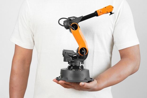 Meet the Mirobot: a 6-axis desktop robotic arm ready for your drawing, writing, and coding needs. It is open source and uses OpenMV and computer vision to perceive objects around it. The Mirobot can rotate freely on the vertical axes to complete tasks.