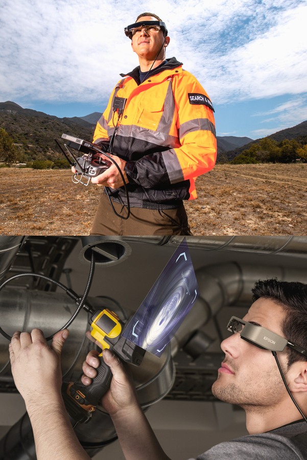 Meet the Moverio BT-35E: a pair of smart glasses with a binocular Si-OLED HD display with drone piloting, work, and entertainment applications. These work with HDMI 1.4 and USB Type-C output devices. The Moverio BT-35E glasses have 720 resolution with 80” projected screen size at 16.4ft.