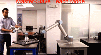 As you can see, one robot can be used to control the other arm. Master/slave roles can be switched fast. These robotic arms can actively track and avoid obstacles.