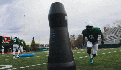 Meet the MVP SPRINT: a robot designed to train NFL players. It is built to simulate the size, weight, speed, and agility of a player. It allows full contact training with less risk. SPRINT can be used with linebackers, running backs, quarterbacks, and everyone in between.