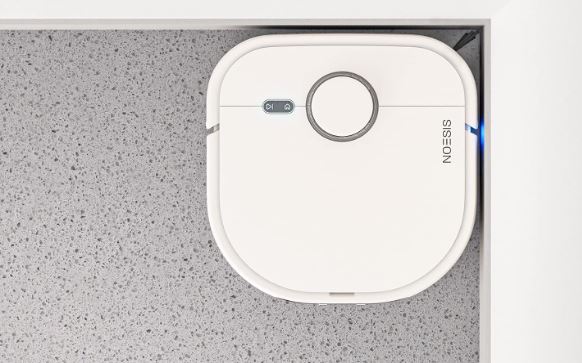 This is the NOESIS Florio: a 2-in-1 robot vacuum and mop that keeps your home clean. A powerful robot with a fully autonomous dock that replaces pads, refills water, and collects dust. It has 5100pa suction and a powerful mopping action to remove stubborn dirt. It also has a smart mop lift technology.