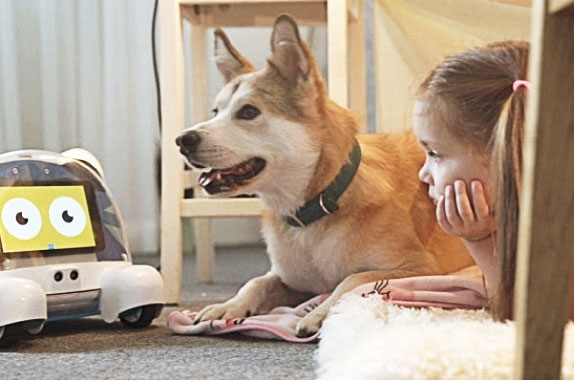 The robot has sensors to detect unusual activity and alert you. With two-way video call feature, you can stay in touch with your dog. The 7″ tablet runs Android.