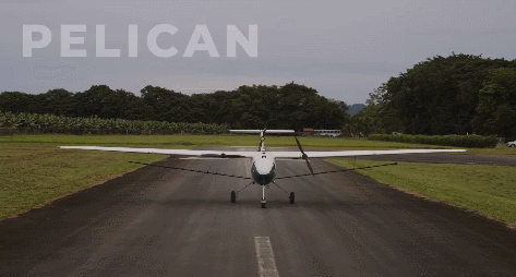 The Pelican Spray has a wing span of 38ft. It lasts up to 30 minutes on battery. It has a runway requirement of 656 ft x 33 ft. It can cover 150 acres per hour.