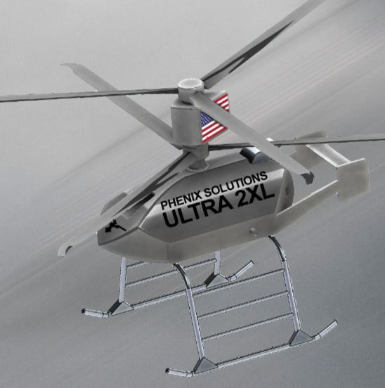This is the Phenix Ultra 2XL: an unmanned aircraft system capable of lifting heavy load. It can lift up to 2000lbs of load for remote deliver up to 200 miles. This aircraft can be used to drag & drop inflatable rafts and other lifesaving equipment to people who need help.