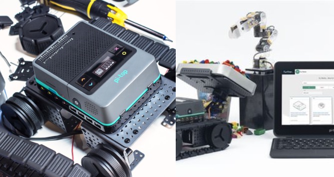 The pi-top [4] has a metal case with 14 electronic components such as sensors, buttons, and LEDs. With the advanced vehicle kit, you can design and make design and make programmable vehicles.