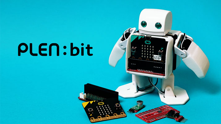 Meet the PLEN:bit – a cute sensor-controlled programmable robot for beginners and advanced users. It stands 13cm tall and has 8 movable joints. It can walk, dance, wave, and do a whole lot more. The PLEN:bit is based on micro:bit, so you can use a JavaScript Block editor to easily program it.