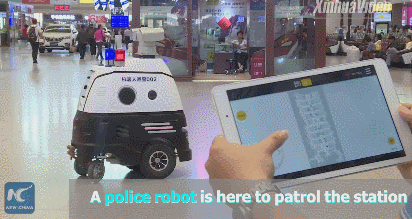 Robots are already being used to monitor sensitive areas for businesses 24/7. This Chinese police robot is capable of patrolling railway stations. It stands 1.3m tall, weighing 100kg. It uses face recognition and can work in dark conditions.