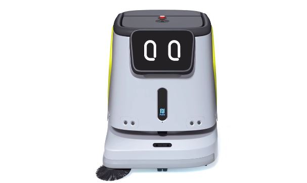 This is the PUDU CC1: a commercial cleaning robot that can mop, scrub, sweep, and vacuum the floor. This multi function robot has 17000PA suction power. It is designed to handle corners easily with its side brush. This robot uses SLAM to perceive its surroundings.