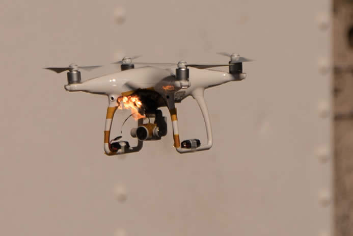So how do you deal with rogue drones? You can always catch them with an advanced anti-drone system and haul them to a safe zone or take them out with laser. This video shows the Raytheon CUAS Laser Dune Buggy taking out an unmanned aerial vehicle with laser from a mile away.