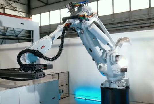 This robot has an OmniCore controller and regenerative power technology to save energy. The above video shows it in action.