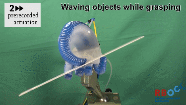 The RBO Hands can flip a pen upside down, wave objects while grasping, rotate a sphere, and do other in-hand manipulations.