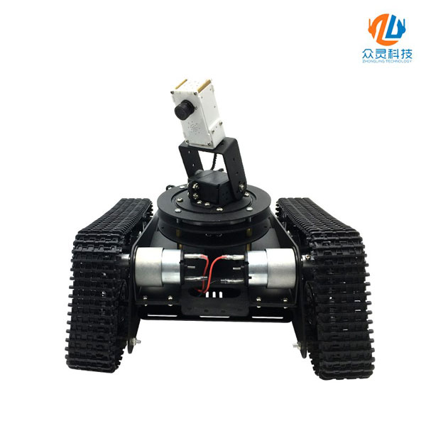 The camera head has 270-pan and 180-tilt support. The robot is based on a STM32 board.