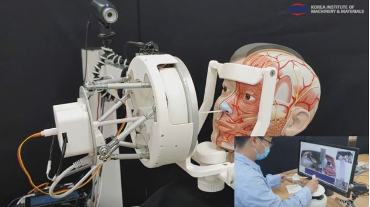 Here is another swab robot developed for remote sample collection. A team of Korea Institute of Machinery & Materials researchers built this robot to eliminate human contact. The robot has a disposable swab that it uses to get samples from the nose and mouth areas.