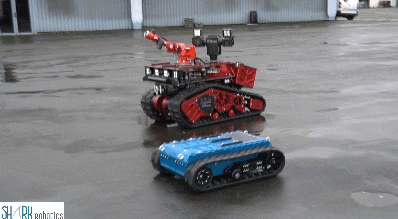 Meet the RHYNO robot from Shark Robotics: a rugged platform with 500kg carrying capacity that can take on challenging terrains. It has 2 x 800W engine power and can handle slopes of 60%. The RHYNO features an aluminum welded chassis and Picatinny rails interface.