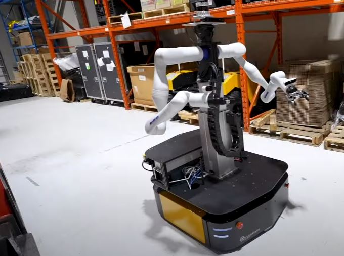 This robot has a low profile and fits through 32-inch doors. It has max speed of 1.1m/s. You can find out more about it here.