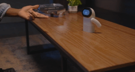This robot has a screen to express itself. It is programmable, so you can teach it new tricks with Python, Blockly, or VSCode. It has sensors on its head and belly to respond to your touch.