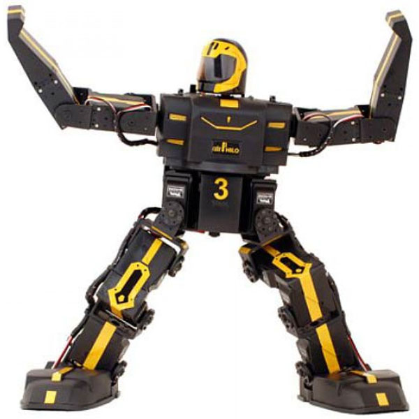 Here is another cool humanoid robot capable of walking and performing user-programmed actions. The RoboBrothers RoboPhilo has 20 servos, so it can move its head, waist, and thighs. Its robot controller has 24 servo channels and up to 8 I/O interfaces. You can program the robot from your PC.