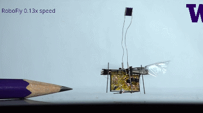 RoboFly has a tiny circuit that converts laser energy into electricity to operate the wings. For now, the robot can fly and land. The team hopes to find a way to steer the laser, so RoboFly can hover and fly around.