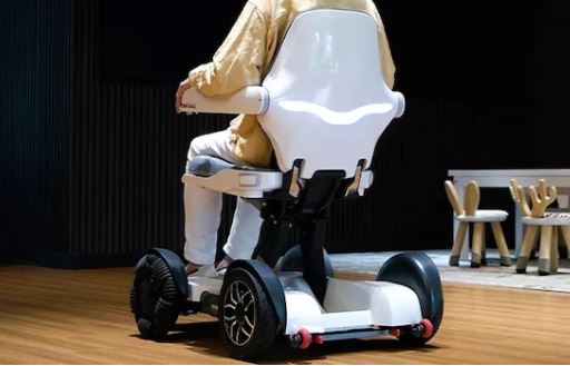 Meet the Robooter: an all-terrain wheelchair with omni-wheels that can move freely on grass, sand, and other uneven surfaces. It has an intuitive controller with an enlarged joystick and voice prompts.