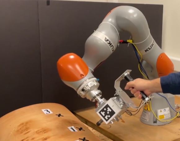Drilling a hole on a curved surface at different angles manually can be challenging. Alireza Madani, Pouya P Niaz, Berk Guler, Yusuf Aydin, and Cagatay Basdogan are a team of talented researchers who used a KUKA LBR iiwa 7 cobot to assist with the process. The operator can manipulate a drill mounted on the robot with one hand with haptic guidance of the cobot and visual guidance provided through an AR interface. The below video shows how this robot works: