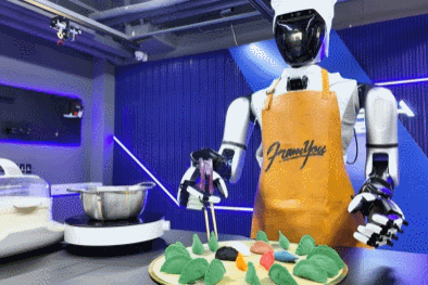 This is the Robot Era Star1: a smart humanoid robot that can perform various household tasks. It stands 5’7″ tall with 44lbs payload capacity. It has modular 5-finger tactile sensing 12DOF hands. As this video shows, this robot can now cook dumplings, steam buns, pour wine, and clink wine glasses.
